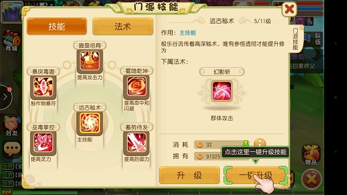 风起云涌:风系群伤;石破天惊:群体减益魔抗;云雾缭绕:封印,无法接受治疗;漫天花雨:群增益,提升速度;化气凝神:群增益,回魔法;百毒不侵:单辅,清除中毒。