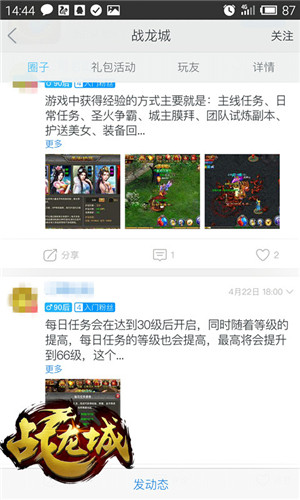 《战龙城》手游IOS限免火爆,自然引来众多的玩家讨论。玩家讨论如何参与活动的同时,也相约一起玩游戏、刷副本参加日常争霸活动,证明自己的实力。“龙城打卡”“大神晒攻略”等活动很受欢迎,玩家们纷纷晒出自己引以为豪的游戏截图,或者个人大神攻略,和大伙儿分享自己在游戏中取得的成就。